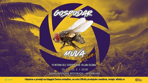 U nastavku programa edukativnih pozorišnih predstava za tinejdžere, Dom omladine Beograda i Studio Centar najavljuju još jednu premijeru! Predstava „Gospodar muva – uživo" biće premijerno izvedena 20. i 21. maja od 20 časova u sali Amerikana DOB. Po motivima čuvenog romana Vilijama Goldinga donosi brutalno iskren i uznemirujući portret savremenog društva kroz prizmu neobičnog eksperimenta. Deca, sama na pustom ostrvu, suočena su sa izazovima koji prevazilaze pitanje pukog opstanka. Bez autoriteta, bez pravila, i bez ikakvog spoljnog uticaja, njihova borba postaje ogledalo naših najdubljih strahova i najtamnijih poriva. U toj izolaciji rađaju se nova pravila, novi bogovi – i novi mučitelji.