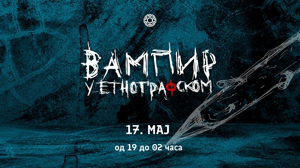 Povodom Međunarodnog dana muzeja, Etnografski muzej otvara svoja vrata za jednu potpuno drugačiju i nesvakidašnju muzejsku avanturu „Vampir u Etnografskom”. Posetioce očekuje nezaboravno iskustvo na granici stvarnosti i narodnih verovanja, sa programom namenjenim i najmlađima i odraslima, koji će trajati od subote 17. maja u 19 časova, do nedelje, 18. maja u 2 časa posle ponoći.