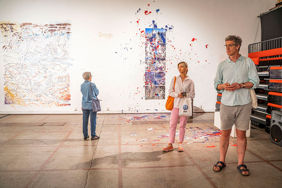 Nakon razgovora, novinari su imali priliku da, uz vođenje kustosa Dejana Vasića, obiđu upravo otvorenu izložbu Ovo nije mural koja hrabro otvara pitanje dometa i ograničenja murala, sa akcentom na njihovu kapitalizaciju za različite političke narative.
