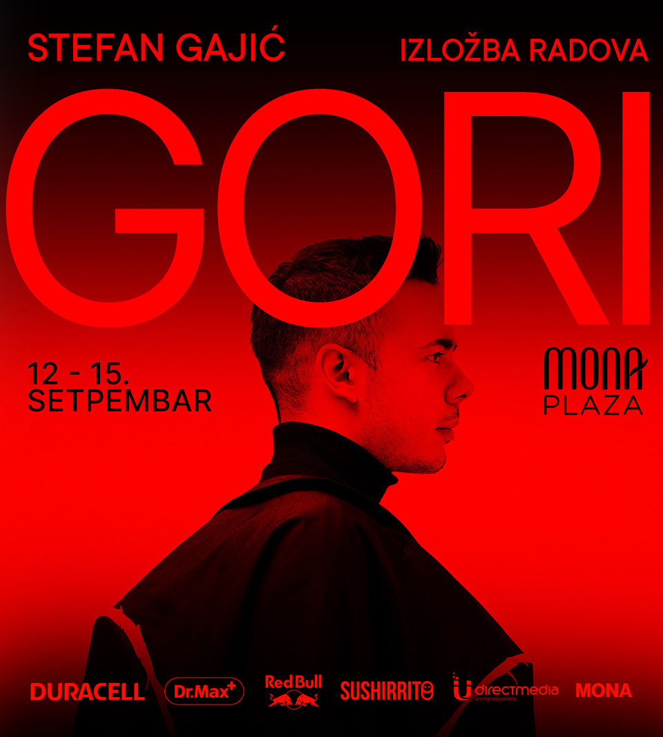 Visoke temperature nas zagrevaju za izložbu koja će da GORI! Kako izgleda kada viralni postovi sa društvenih mreža i marketinške kampanje postanu deo umetničke instalacije? Stefan Gajić, najmlađi advertajzing kreativni direktor u regionu, ovog septembra nam sprema izložbu pod nazivom „GORI“! Od 12. do 15. septembra, publika će imati priliku da poseti jedinstvenu postavku u unikatnom i nesvakidašnjem prostoru u centru grada u okviru Hotela Mona Plaza. Izložba koja nosi naziv „GORI“ predstavlja jedinstveni spoj tradicionalnih plakata sa digitalnim formatima, koji će domaća publika imati prvi put priliku da vidi. Baš iz tog razloga, autoru je bilo od izuzetne važnosti da prostor izlaganja bude urban, drugačiji i kul. Tokom tri dana trajanja izložbe, publika će imati priliku da na digitalnim formatima, ekranima, led panelima i 360 instalacijama uživa u radovima koji odgovaraju na temu GORI. Postavku čine tri tematske celine, odakle proizlazi i sam naziv.