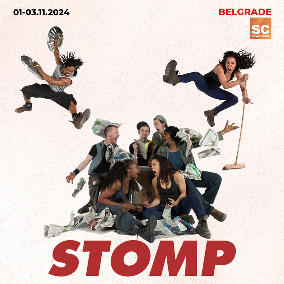 Svetska akrobatska muzička senzacija STOMP iz Velike Britanije, koja je postala pravi globalni fenomen, dolazi u Beograd! Tri nastupa planirana su u Sava centru 01, 02. i 03. novembra 2024. sa početkom u 20.00 časova. STOMP predstavlja atraktivni spoj umetnosti ritma, plesa, scenskog pokreta i komedije sa uzbudljivom muzikom inspirisanom užurbanošću svakodnevnog života. Osmoro izvođača stvorilo je eksplozivan ritam u kome uživaju ljudi svih uzrasta širom sveta već treću deceniju, “izvlačeći” zvukove iz upaljača, kanti za smeće, poklopaca, pa čak i kuhinjskih sudopera, uz akrobatsku preciznost. Ulaznice se mogu nabaviti na Ticket Vision prodajnim mestima i onlajn na tickets.rs. Ova svetska senzacija prvi put je nastupila u Srbiji 2009. godine na Beogradskim muzičkim svečanostima (BEMUS). STOMP dobija pohvale kritike i ovacije publike širom sveta. Do sada su imali preko 20,000 nastupa, 12 miliona gledalaca, nastupili su u 55 država na svim kontinentima! STOMP je na turneji po svetu više od 30 godina.