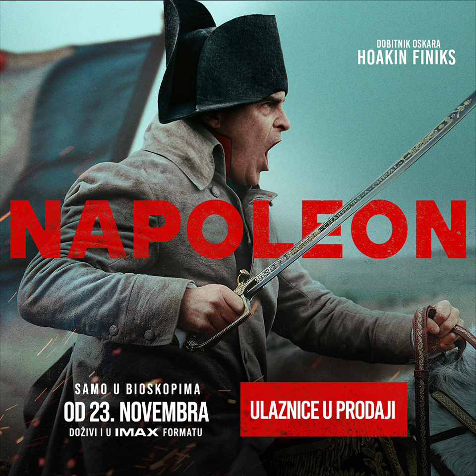 Sledećeg meseca, 23. novembra, u domaće bioskope napokon stiže dugo očekivani istorijski spektakl o usponu i padu jedne od najvažnijih istorijskih ličnosti – Napoleona Bonaparte. Prema brojnim istoričarima bio je državni inovator i vojni genije, kontroverzni tiranin i beskrupulozni diktator, ali niko ne može da porekne uticaj koji je Napoleon imao na istoriju Evrope. O Napoleonu na velikom platnu su maštali Stenli Kjubrik i Stiven Spilberg, ali je to je na kraju pošlo za rukom jednom od najuspešnijih filmskih reditelja svih vremena - Ridliju Skotu. Nakon što je pogledao Hoakina Finiksa u Džokeru (2019.) znao da je pronašao poslednji deo slagalice kako bi ova epska priča napokon zaživela na velikom ekranu! Film prati Napoleonov uspon do carske moći kroz njegovu turbulentnu vezu s njegovom voljenom caricom Žozefinom, vizionarske ratne kampanje i okrutne taktike protiv političkih neprijatelja…