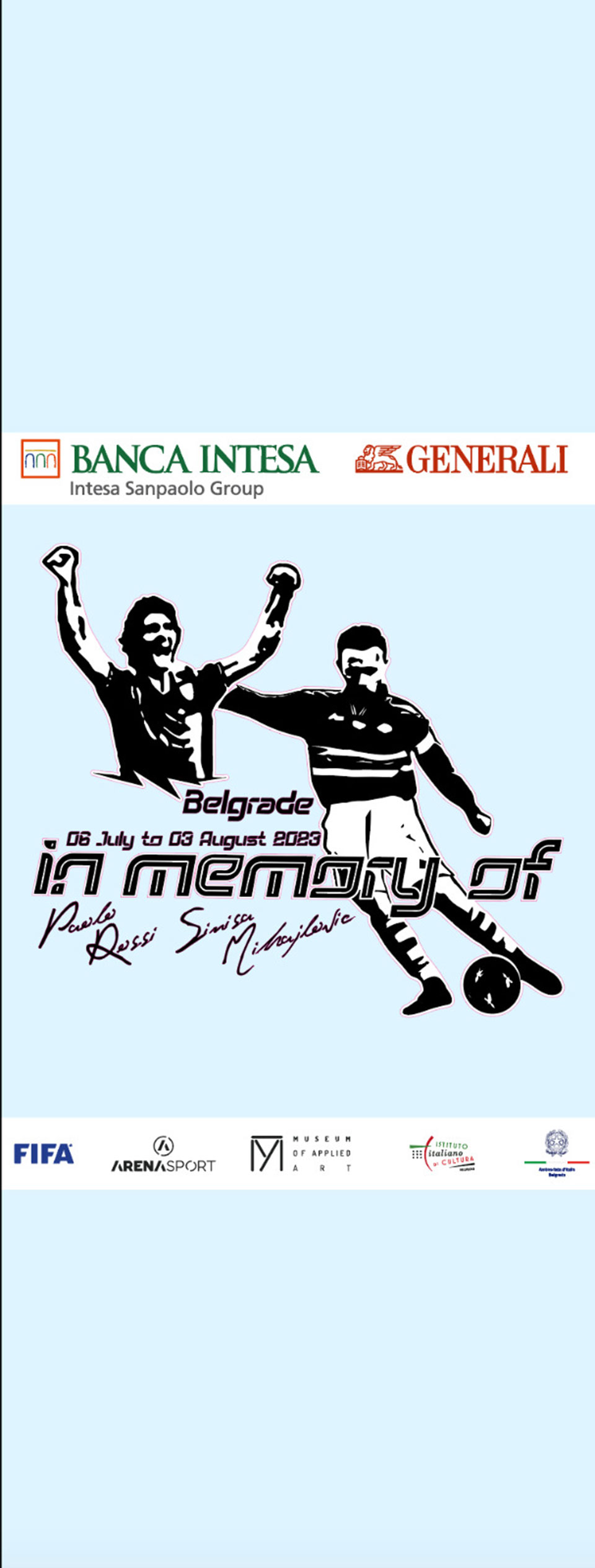 Vrata Muzeja primenjene umetnosti biće otvorena od 6. jula u 18 časova, za izložbu dve kultne ličnosti životnog stila i fudbala, Paola Rosija i Siniše Mihalovića. Svečano otvaranje će se održati u prisustvu i obraćanju prisutnima direktorke MPU Biljane Jotić; potpredsednice Vlade i ministarke kulture RS Maje Gojković; NJ.E. Ambasadora Italije u Beogradu Luka Gori; članova porodica Rosi i Mihajlović (Federika Кapeleti i Dražen Mihajlović), predsednik Italijanskog instituta za kulturu u Beogradu Roberto Ćinkota; izvršnog direktora Banke Inteza Darka Popovića; predstavnice Delta đenerali Nataše Marjanović i direktora izložbe Marka Škembrija. Izložba će se prostirati iz Glavne galerije, galerije Anastas i Galerije mladih. Organizovano u delovima posvećenim Paolu Rosiju, Siniši Mihajloviću, međunarodnom i jugoslovenskom sportu i običnom životu. Tema je posvećena ličnim karakteristikama u javnoj kulturi i javnom životu Srbije i Italije.