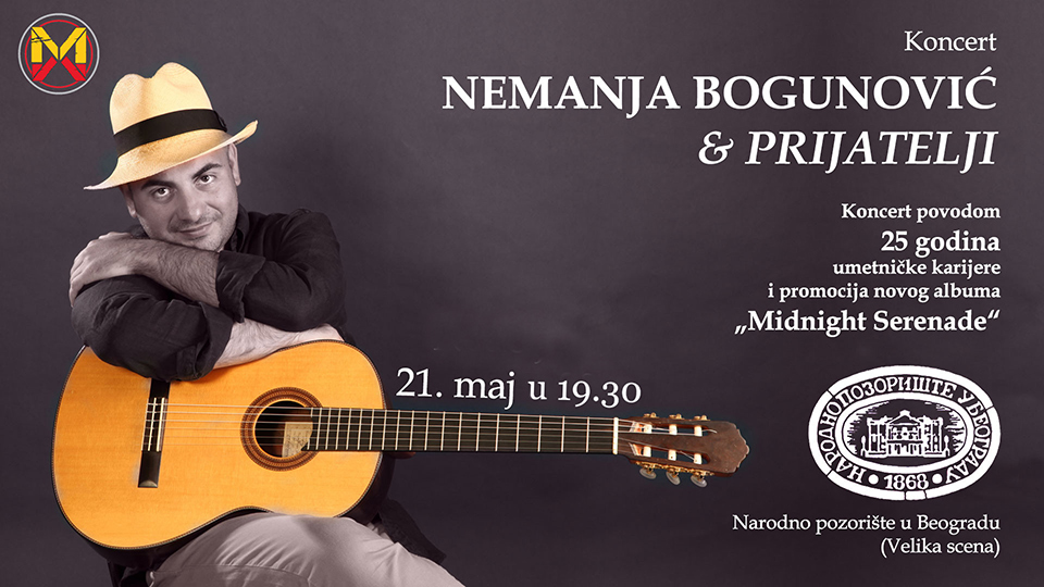 Naš priznati gitarista i kompozitor Nemanja Bogunović nakon tri godine ponovo nastupa u Beogradu. Koncert pod nazivom „Nemanja Bogunović i prijatelji” biće održan u nedelju, 21. maja od 19.30 na velikoj sceni Narodnog pozorišta u Beogradu. Povod za održavanje koncerta je obeležavanje 25 godina duge karijere ovog vrsnog muzičara, ali i promocija novog albuma „Midnight Serenade” koji će u maju biti objavljen za diskografsku kuću Multimedia Music. „Veoma se radujem što ću posle trogodišnje pauze ponovo nastupiti pred beogradskom publikom, i velika mi je čast i zadovoljstvo što će se ovaj koncert održati upravo na Velikoj sceni Narodnog pozorišta u Beogradu“ kaže Bogunović i dodaje: „Na ovom koncertu ću, između ostalog, publici predstaviti svoje kompozicije koje su nastajale u proteklih nekoliko godina, a koje će se naći na mom novom albumu.“