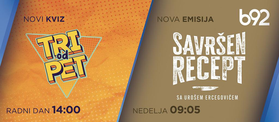 Nova programska šema televizije B92 startuje u ponedeljak 20.3, a produkcija Film Plus Pictures proizvela je četiri nova formata koja će se emitovati na toj televiziji. Svakog radnog dana od 14.30h biće emitovana emisija „Na kafi sa...“ , talk show sa igranim elementima. Domaćini emisije su Seka Sablić, Zoran Cvijanović i Sandra Bugarski, koji će se smenjivati od ponedeljka do petka. Takođe, svakog radnog dana od 14 časova gledaoce očekuje kviz „3 od 5“, kao i serija „Brak mrak“ od 17.15h. Igranu seriju „Brak mrak“ koja ima 44 epizode režirao je Goran Nikolić. U komičnom sitkomu glavni akteri su bračni par Ljubinka (Ana Bartoli) i Milan (Ivan Ninčić) koji žive u zajednici, a u njihovu kuću stiže veliko nasledstvo koje će promeniti sve. Gastronomski show „Savršeni recept“ sa kuvarom Urošem Ercegovićem biće emitovan nedeljom u 9.05h. Sva četiri projekta osmislio je kreativan tim produkcije Film Plus Pictures, na čelu sa osnivačem i vlasnikom produkcije Nikolom Burovcem.