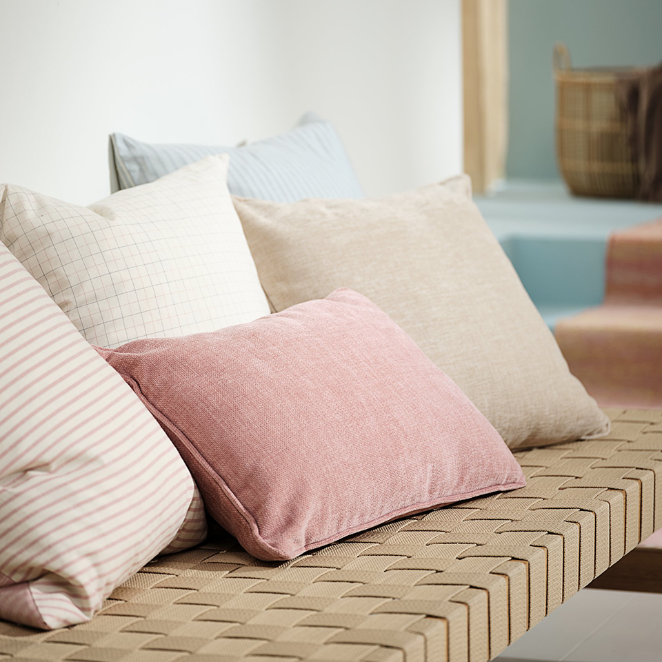 Dodajte male dodire boje u svoj dom ili upotrebite mekane tekstile kao što su ukrasni jastučići kako biste još više utoplili svoj prostor. Presvucite vaše ukrasne jastuke GULDREGEN jastučnicama u toploj ružičastoj boji, a uz to dodajte ćebe KONGSSPIR u istoj smirujućoj nijansi.