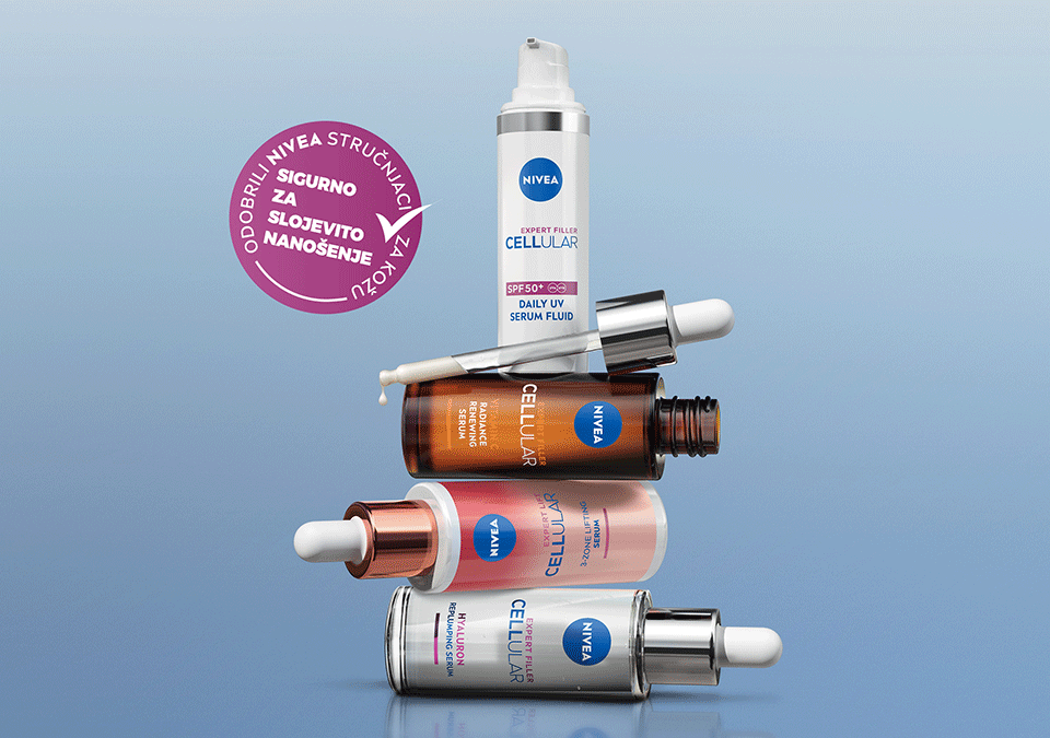 Nega kože sada nije samo funkcionalna, već i izraz svesnog načina života koji naglašava individualnost i kreativnost. Upravo tu nastupa NIVEA, kombinujući svoju dugogodišnju stručnost s inovativnim, efikasnim formulama i predstavlja serume posebno razvijene za nanošenje slojeva koji nude individualna rešenja za svaku potrebu kože - i sve to sa uobičajenim visokim NIVEA kvalitetom! Inovativni izbor NIVEA seruma omogućava prilagođavanje vaše rutine nege kože sa vašim potrebama, a sve to sa proizvodima koji su efikasni i laki za upotrebu. Svaki NIVEA serum izuzetno je efikasan samostalno, ali u kombinaciji pruža još intenzivniju negu. Slojevito nanošenje omogućava prilagođenu negu usmerenu na specifične probleme kože, stvarajući personalizovano iskustvo koje optimalno podržava kožu na više nivoa. Pitate se kako ova tehnika funkcioniše?