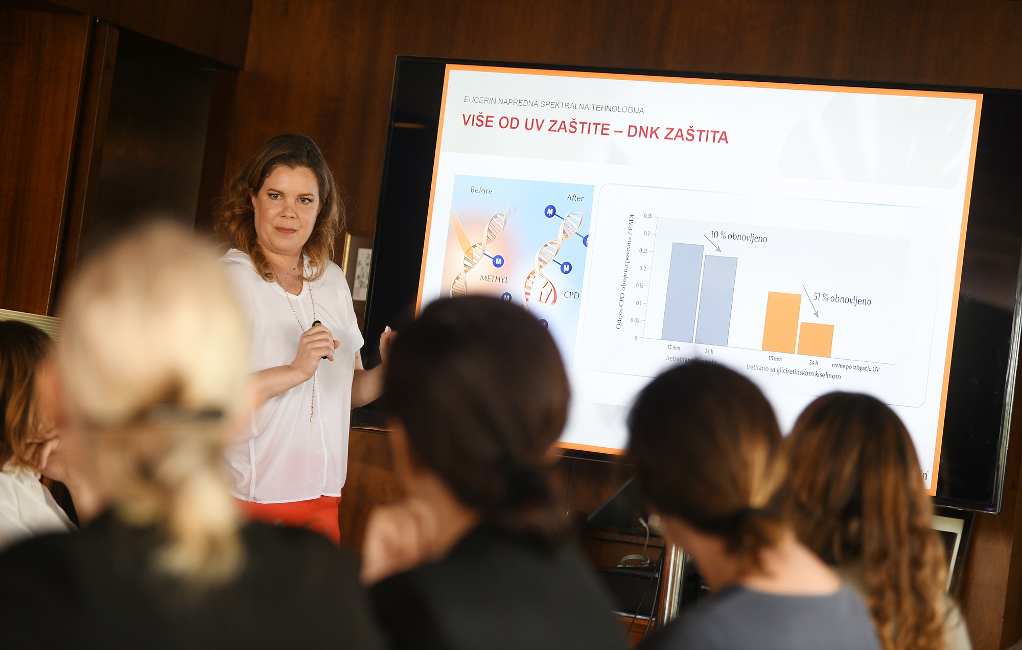 U restoranu Ebisu Square Nine Hotela u Beogradu, održan je Eucerin® događaj za medije posvećen zaštiti od sunca kome su prisustvovali predstavnici medija koji redovno prate ovu temu i podižu svest o značaju odgovornog ponašanja na suncu. „Nakon osam godina tokom kojih, uz vašu podršku, sprovodimo društveno odgovorne kampanje „Pregled za sve“ i „Zaštita za sve“, čiji je cilj prevencija i edukacija u oblasti zaštite od sunca, u Srbiji je znatno podignuta svest o značaju odgovornog ponašanja na suncu. Veoma je važno da ova tema ostane u našem i vašem fokusu jer sunce jeste neophodno za dobro zdravlje i raspoloženje, ali ima i svoju negativnu stranu,“ rekla je na početku događaja Dragana Palfi, direktor Eucerin Srbija. Ona je ukazala da u tom cilju, Eucerin® konstantno radi na unapređivanju efikasnosti formulacija svojih preparata i jednostavnosti i prijatnosti njihove upotrebe, jer je redovnost primene jednako važna kao i izbor adekvatnih preparata za zaštitu od sunca. Tokom prezentacije za medije, Palfi je objasnila šta znači superiorna zaštita od sunca i na koji način Eucerin® preparati za zaštitu od sunca nude više od UV zaštite.
