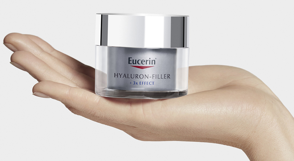 Unapređena Eucerin® Hyaluron-Filler linija pruža trostruki efekat antiage nege i zadovoljava sve potrebe efikasne nege protiv starenja, kao i nege između estetskih procedura. Hijaluronska kiselina je supstanca koja se prirodno nalazi u našem organizmu i koži. Zahvaljujući osobini da vezuje velike količine vode, hidrirajući je i tako joj dajući volumen, ona čini našu kožu glatkom i daje joj mladalačku svežinu. Već u ranim 30-tim nivo hijaluronske kiseline u koži neminovno počinje da opada. Zato se na licu pojavljuju bore, a naša koža gubi jedrinu.