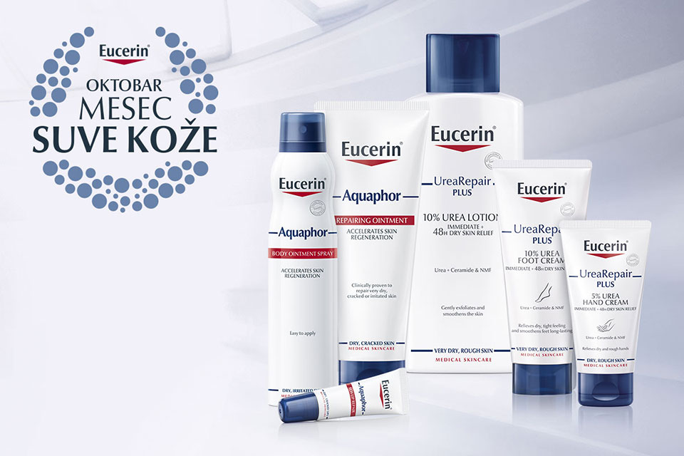 INFO PLUS: Tokom Oktobra – meseca suve kože, kupovinom Eucerin® preparata iz linija za čišćenje i negu suve kože u vrednosti iznad 1.500 dinara ostvarujete pravo na popust od 20 odsto