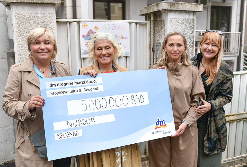 Kompanija dm donirala je pet miliona dinara Nacionalnom udruženju roditelja dece obolele od raka (NURDOR) za uređenje i opremanje roditeljskih kuća, kao i za podmirivanje tekućih troškova za narednu godinu. NURDOR-ove kuće – smeštene u Nišu, Novom Sadu i Beogradu – pružaju utočište roditeljima dece koja se leče od malignih bolesti van grada u kom žive, obezbeđujući tako porodicama da ostanu na okupu. Donacija NURDOR-u samo je jedna u nizu aktivnosti usmerenih na podršku zajednici koje sprovodi drogerijski lanac dm u godini u kojoj slavi dve decenije poslovanja u Srbiji. „U dm-u duboko verujemo da svako dete i svaka porodica zaslužuju ne samo sigurnost već i ljubav, podršku i priliku za bolju budućnost. Zato već dugi niz godina s ponosom pružamo podršku NURDOR-u, organizaciji koja je, baš kao i dm, prisutna u Srbiji već 20 godina. Naša donacija nije samo finansijska pomoć, ona je izraz naše posvećenosti i solidarnosti s onima koji se suočavaju sa velikim izazovima.