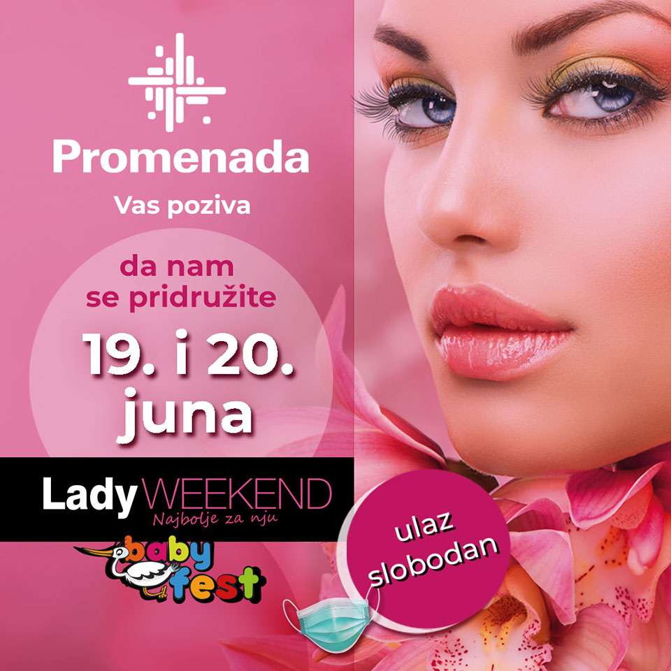 Za dane vikenda 19. i 20. juna, ispred u shopping centru Promenada u Novom Sadu održaće se Lady Weekend – Sajam za žene zajedno sa Baby festom- Sajmom za mame, bebe i trudnice. Radno vreme sajma je od 10,00 do 20,00 časova. Dame, ali i svi posetioci imaće priliku da uživaju u bogatom edukativno – zabavnom programu. Celokupno dešavanje posvećeno je prvenstveno lepšem polu. Dame će imati mogućnost da se upoznaju sa novim trendovima u svetu mode/šminke, da saznaju zašto je dobro vežbati, otkriju neke nove kulinarske recepte koji pružaju užitak a ne doprinose pojavi viška kilograma. Oko 25 izlagača će na štandovima predstaviti svoje proizvode za dame.