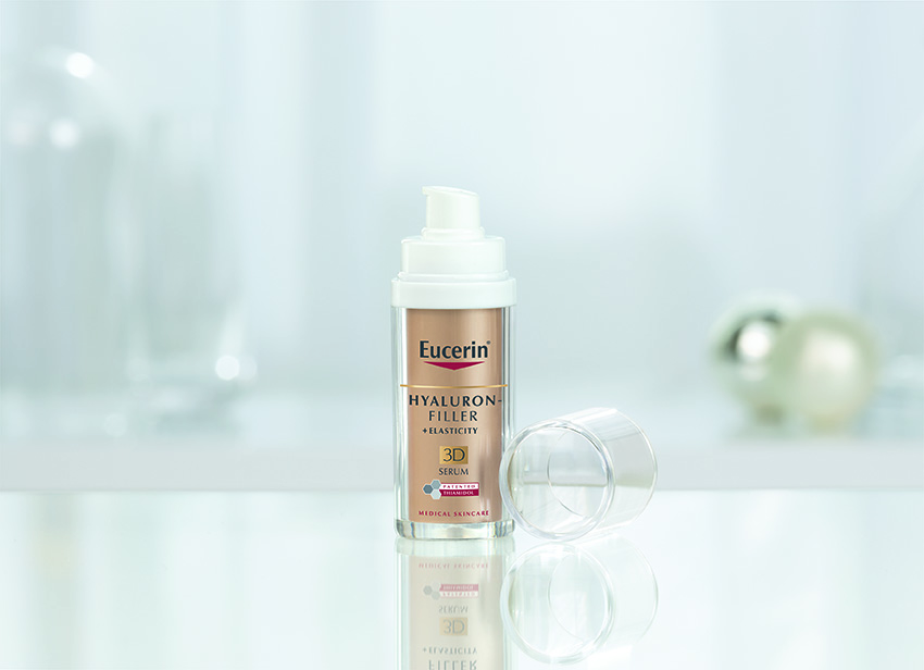 Eucerin® Hyaluron-Filler+Elasticity preparati sada nude odgovor na sve izazove zrelih godina na putu do glatke, blistave i podmlađene kože – umanjuju duboke bore, vraćaju čvrstinu i elastičnost i ujednačavaju ten! Pored kombinacije hijaluronske kiseline kratkog i dugog lanca i klinički testiranog kolagen-elastin kompleksa, unapređena formulacija noćne i dnevnih krema nove generacije iz Eucerin® Hyaluron-Filler+Elasticity linije sadrže i Eucerin® patentirani Thiamidol®. Dodatno, zahvaljujući SPF 15 i SPF 30, Eucerin® Hyaluron-Filler+Elasticity dnevne kreme obezbediće vašoj koži zaštitu od UV zračenja koje dopire na zemlju i u jesenjem i zimskom periodu i utiče na prevremeno starenje kože. Dok vi odmarate, noćna krema, koja sadrži arganovo ulje, ubrzaće proces regeneracije, intenzivno nahraniti kožu i učiniti je svilenkastom i mekom.