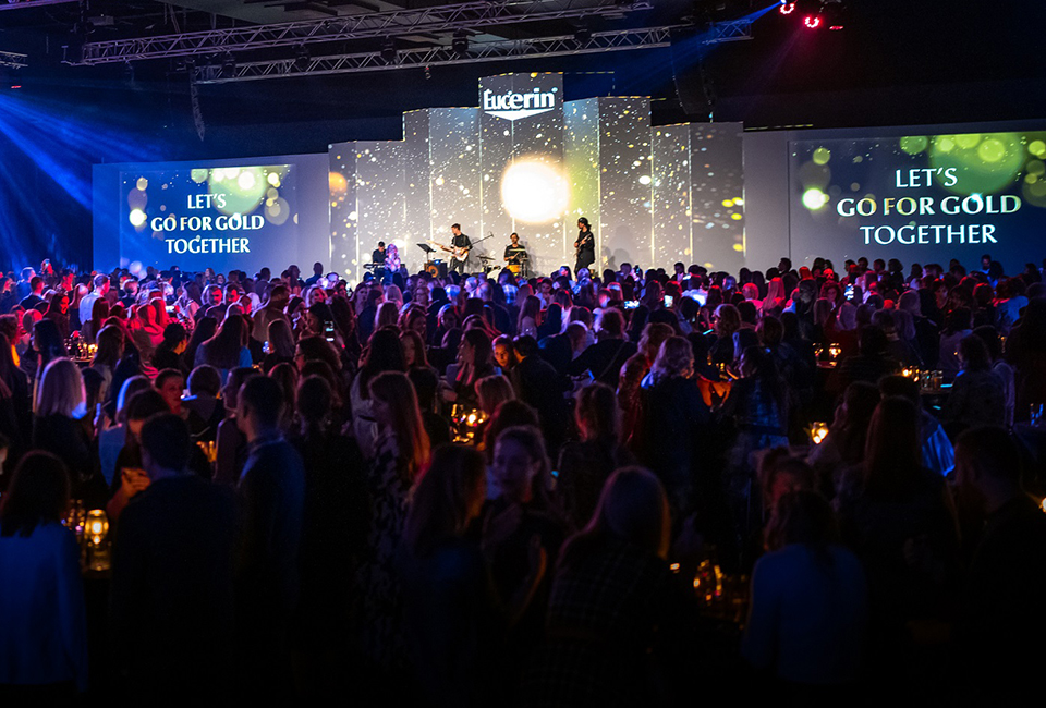 Eucerin® Srbija organizovao je sinoć ekskluzivni događaj za više od 700 dermatologa, farmaceuta, influensera, predstavnika medija, prijatelja i saradnika sa kojim blisko sarađuje tokom skoro dve decenije koliko je ovaj brend prisutan u Srbiji. “Let's Go For Gold Together” događaj, za koji se tražila ulaznica više, na samom početku opravdao je svoj glamurozni naziv. Nakon uvodnog spota sa porukom da je zdrava i lepa koža jedan od najvažnijih uslova našeg samopouzdanja i sreće, na sceni se pojavila plesačica na svili, čiji nastup je dao pečat avangardnosti daljeg toka događaja. U duhu najmodernijih scenskih nastupa, nakon toga, uz vođstvo poznate voditeljke Marije Popović, prisutnima su se obratili nova direktorka Eucerin® Adriatic regije, Dragana Palfi, dugogodišnja direktorka Eucerin® Srbija, Nada Miletić Nevajda, sada direktorka Brenda Eucerin® za Istočnu Evropu, i specijalista dermatologije Prof. dr Dušan Škiljević, zamenik direktora Klinike za dermatovenerologiju Kliničkog centra Srbije.