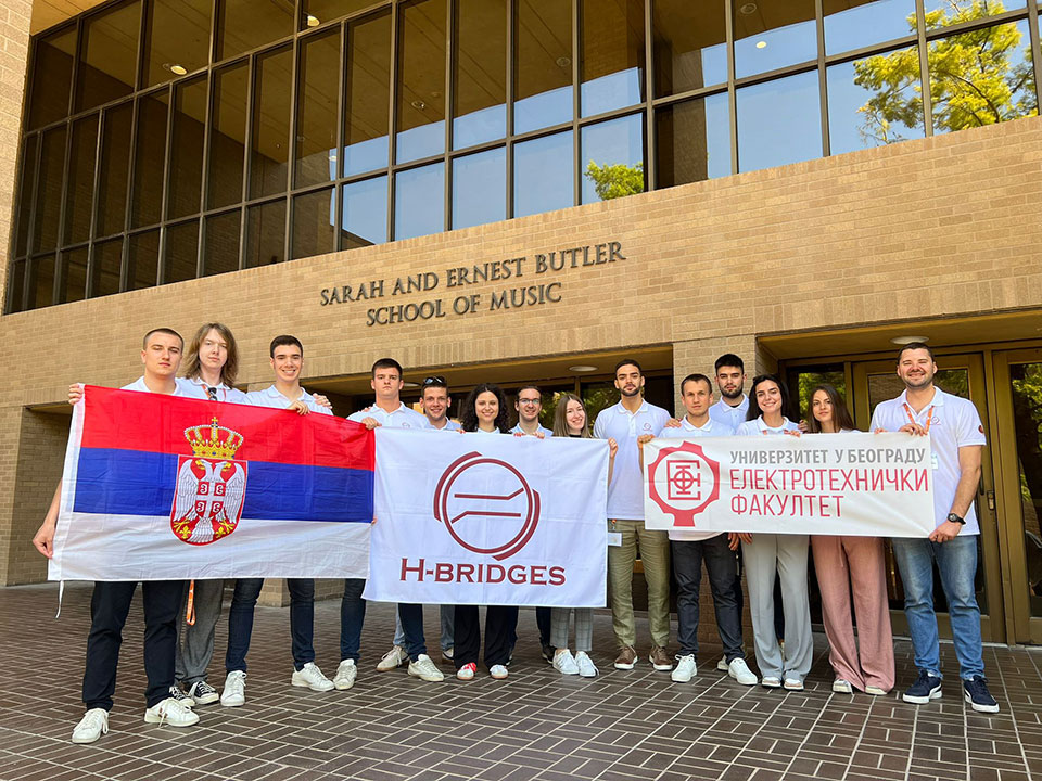 H-Bridges, tim studenata sa Elektrotehničkog fakulteta (ETF) tradicionalno predstavlja Srbiju na najvećem svetskom univerzitetskom takmičenju u oblasti inovativnih i energetski efikasnih rešenja - IEEE International Future Energy Challenge (IFEC). Tim Elektrotehničkog fakulteta je i ove godine u finalu takmičenja, održanog 14 - 17. jula u Ostinu u Teksasu, ostvario veliki uspeh, osvojivši 4. mesto. Tema ovogodišnjeg IFEC takmičenja bila je razvoj i projektovanje stereo audio pojačavača klase D, snage 400W sa dva stereo i jednim subwoofer kanalom. U poređenju sa konvencionalnim pojačavačima u klasi D, prednost predloženog rešenja studenata ETF se ogleda u većoj energetskoj efikasnosti, boljem kvalitetu zvuka i frekvencijskom rasponu, većoj fleksibilnosti u obradi audio signala i manjoj masi i zapremini. Konačni plasman timova u finalnoj rundi IEEE IFEC 2024. godine je: