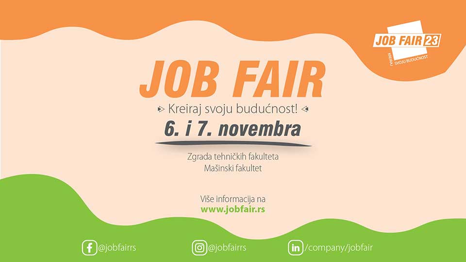Tradicionalno, svakog prvog ponedeljka i utorka u novembru, ove godine 6. i 7. novembra, održaće se Sajam poslova i praksi „JobFair – Kreiraj svoju budućnost!” u Zgradi tehničkih fakulteta (Bulevar kralja Aleksandra 73) i na Mašinskom fakultetu (Kraljice Marije 16) u Beogradu. Organizatori događaja su dve neprofitne i apolitične studentske organizacije: Udruženje studenata tehnike Evrope, BEST Beograd i Udruženje studenata elektrotehnike Evrope - EESTEC LK Beograd. Davne 2005. godine, grupa studenata je došla na ideju da smanji nezaposlenost u državi i spreči drastičan odliv mozgova, pa je kao rezultat nastao Sajam, koji ove godine slavi devetnaesti rođendan. Vrata Zgrade tehničkih fakulteta su otvorena za sve studente i diplomce prirodno- matematičkih i tehničko-tehnoloških fakulteta, koji će zajedno sa mnogobrojnim kompanijama upotpuniti ovogodišnji Sajam. Na Sajmu će studenti imati priliku da se bolje upoznaju sa predstavnicima kompanija, i saznaju kakve poslove i prakse nude. Pored toga, JobFair pomaže studentima da razviju svoje veštine kroz dodatne sadržaje: