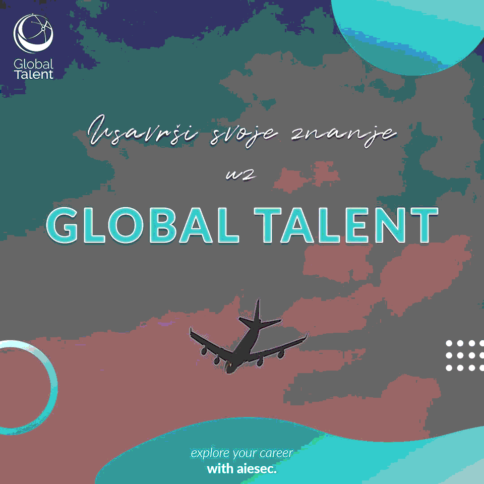 Student si završnih godina i ne znaš šta ćeš dalje? Želiš praksu, ali ne znaš odakle da počneš i gde da tražiš? Završio/la si studije, no, svaki posao za koji apliciraš zahteva prethodno iskustvo? AIESEC ti može pomoći! Global Talent je program stručnog usavršavanja usmeren ka mladima koji žele da rade na svom profesionalnom i karijernom razvoju u inostranim kompanijama. Obezbeđen od strane AIESEC-a, međunarodne organizacije koja pomaže mladima da ispune svoj liderski potencijal.