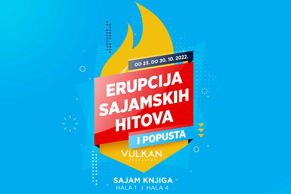 Vulkan izdavaštvo će i ove godine na 65. Međunarodnom beogradskom sajmu knjiga, koji će se održati od 23. do 30. oktobra, predstaviti niz bestselera i popularnih naslova različitih žanrova stranih i domaćih autora. Ljubitelje Donata Karizija, italijanskog bestseler pisca kome je debitantski roman Šaptač doneo brojne nagrade, Vulkan izdavaštvo obradovaće novom knjigom Kuća bez sećanja. Aleksandra Poter, čiji se romani objavljuju u više od 20 zemalja i čiju knjigu Moj gospodin Savršeni publika u Srbiji obožava, nesumnjivo će ispuniti očekivanja romanom Jedna dobra stvar. Među novitetima Vulkan izdavaštva naći će se i u svetu već popularni naslovi: Sanatorijum Sare Pirs, Sa neba padoše tri jabuke Narine Abgarjan, Noć prvog dana Tereze Revaj, Arijadna Dženifer Sejnt, Kajzerova mreža Stiva Berija, Obscuritas Davida Lagerkranca...