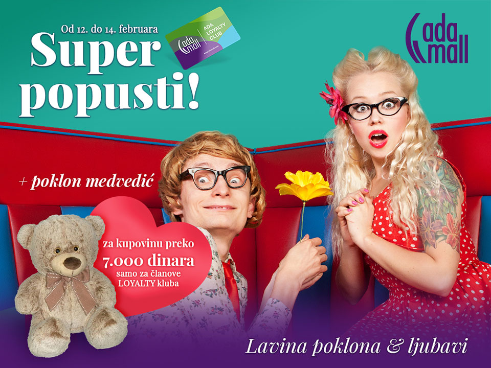Uz popuste i poklone čeka vas druženje sa tiktokerom Neuspeh Jokeru - Da li ste osetili tu toplinu i zadovoljstvo kada vas neko zagrli? Taj osećaj da upoznaš nekoga posle dugo vremena, i preneseš sve svoje emocije i osećanja u čvrst zagrljaj i bez reči im pokažeš koliko ti nedostaje, koliko ih voliš, koliko ti je stalo do njih, koliko je važno što su oni u tom životu i kako je tvoj život nepotpun bez njih. Zagrljaj daje sve odgovore. U susret omiljenom februarskom prazniku, Danu zaljubljenih, od 12. do 14. februara u ADA MALL shopping centru organizujemo specijalnu akciju pod nazivom Lavina poklona i ljubavi.