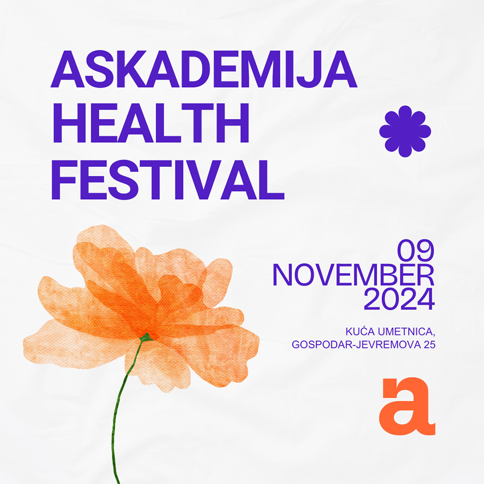 U savremenom svetu, gde su stres i ubrzan način života postali svakodnevnica, fizičko i mentalno zdravlje često ostaju u drugom planu. Kao podsetnik na njihovu važnost, ovog vikenda Asocijacija za afirmaciju kulture, pod pokroviteljstvom projekta ASKADEMIJA organizuje Askademija Health Festival dan posvećen fizičkom i mentalnom zdravlju. Festival će se održati 9. novembra u Kući umetnica od 10h do 17h. Ovaj događaj pruža nam priliku da započnemo razgovor o važnosti međusobne podrške i ličnog razvoja, naglašavajući ključnu ulogu zdravih životnih navika- istakla je Marija Takić, koordinatorka projekata u Asocijaciji za afirmaciju kulture. Askademija Health Festival će započeti jutarnjom jogom pod vođstvom Teodore Tešić, koja će pokazati učesnicima kako da se opuste i pripreme za dan pun aktivnosti, a ljubitelji trčanja moći će da se priključe mini maratonu kroz prelepi Kalemegdan.