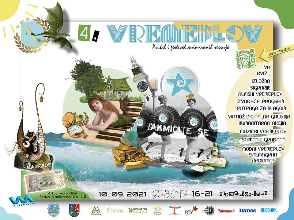 U subotu, 10. 09. 2022. godine u 16 časova počinje 4. VREMEPLOV - festival animiranih sećanja koji će se održati u Arhivu Vojvodine,Žarka Vasiljevića 2a, Novi Sad. Glavna ciljna grupa su nam đaci, uzrasta od 7 do 18 godina. Ovogodišnja tema festivala Vremeplov je Dunav, Novi Sad. Vremeplov je portal i festival kulturno-istorijskih i ličnih sećanja na Novi Sad, predstavljenih sa drugačijeg umetničkog i kulturološkog aspekta kroz formu najnovijih medija ali uz upoznavanje i upotrebu zaboravljenih formi. Festival će se održavati svake druge subote u septembru u Novom Sadu u organizaciji i produkciji Udruženja za video umetnost Videomedeja. Vremeplov je namenjen posetiocima svih uzrasta a glavna ciljna grupa su nam deca i mladi. Svako festivalsko izdanje ima specifičnu temu vezanu za Novi Sad. Osnovna ideja je uključivanje što većeg broja građana u kulturne tokove i očuvanje kulturne baštine kroz digitalizaciju i najnovije forme i medije.