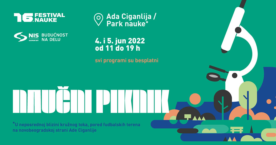 Najveća naučna zabava na otvorenom biće održana 4. i 5. juna na Adi Ciganliji! Dvodnevni Naučni piknik, u organizaciji Festivala nauke, pokazaće deci svih uzrasta uzbudljivu i lepšu stranu nauke! Naučni eksperimenti, druženja, izložbe i šou programi samo su deo besplatnih sadržaja koji će obeležiti ovogodišnji Naučni piknik. Posle dvogodišnjih onlajn izdanja, Festival nauke vraća se druženjima uživo i publici predstavlja novu avanturu – i to na prostoru obnovljenog Parka nauke na Adi Ciganliji. Uz interaktivne eksponate Parka nauke, koje festivalski tim užurbano obnavlja, za prvi junski vikend, 4. i 5. juna pripremljena je posebna naučna zabava. Zvezda Festivala nauke, naučni šoumen Milan Popović izvodiće u nekoliko termina svoje neverovatne eksperimente za decu i odrasle, pokazujući koliko nauka ume da bude uzbudljiva, zabavna i pre svega korisna.