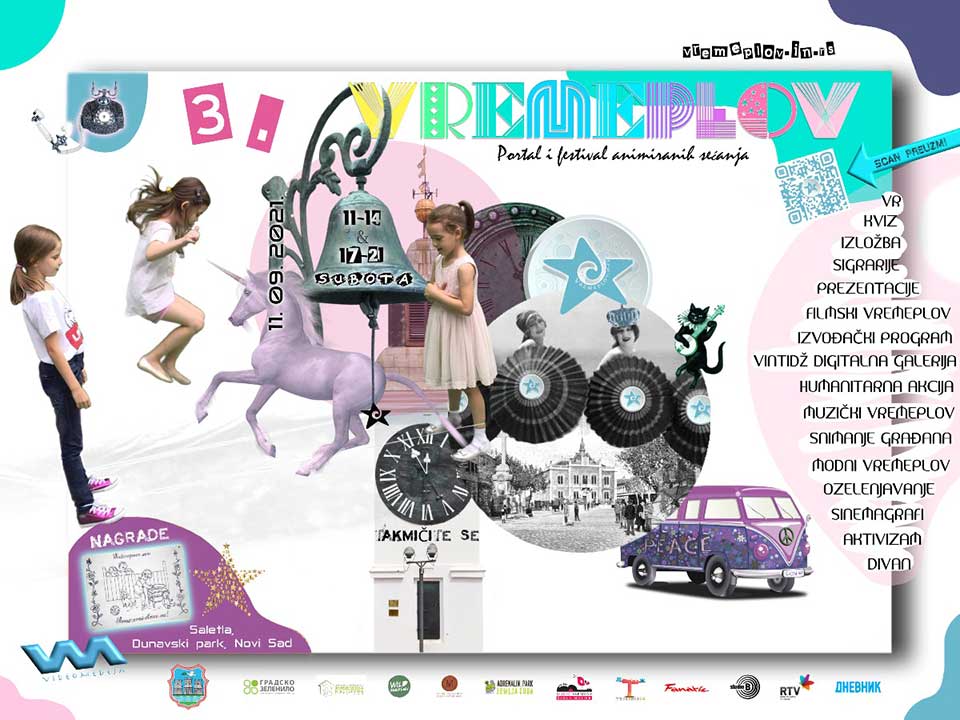 Za deset dana, 11.09.2021. godine u subotu u 11 časova počinje 3. VREMEPLOV - festival animiranih sećanja koji će se održati u Saletli, u Dunavskom parku, u Novom Sadu i trajaće do 21 čas sa pauzom u programu od 14-17 časova. Ovogodišnja tema festivala Vremeplov je Zmaj Jovina ulica. Vremeplov je portal i festival kulturno-istorijskih i ličnih sećanja na Novi Sad, predstavljenih sa drugačijeg umetničkog i kulturološkog aspekta kroz formu najnovijih medija ali uz upoznavanje i upotrebu zaboravljenih formi. Festival će se održavati svake druge subote u septembru u Novom Sadu u organizaciji i produkciji Udruženja za video umetnost Videomedeja. Vremeplov je namenjen posetiocima svih uzrasta a glavna ciljna grupa su nam deca i mladi.