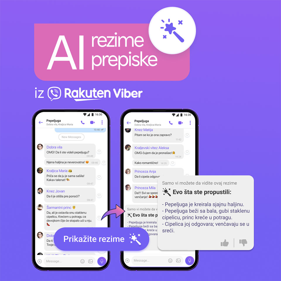 Rakuten Viber, vodeća globalna platforma za privatnu i bezbednu razmenu poruka i glasnovnu komunikaciju iskoristila je Open AI tehnologiju u svojoj najnovijoj funkciji baziranoj na veštačkoj inteligenciji, koja korisnicima kreira rezime prepiske iz nepročitanih poruka unutar Viber grupa. Razvijeno da zadovolji potrebe miliona korisnika koji dnevno ne postižu da pročitaju ili odgovore na sve poruke, ovo vrhunsko rešenje nudi besprekoran i brz način da se osnovne informacije iz do 100 nepročitanih poruka u prepiskama filtriraju u pogodni rezime. AI rezime prepiske izdvaja najvažnije delove prepiske članova Viber grupa i skoro trenutno prenosi najvažnije citate iz tema koje su razmatrane. Takav pristup ne samo da štedi vreme i energiju, već korisnicima značajno pomaže pri donošenju odluka i pospešuje produktivnost. Brzo kreiranje rezimea pomaže korisnicima da ostanu u toku zbivanja, a da pritom ne moraju da prelaze preko dugog propuštenog teksta.