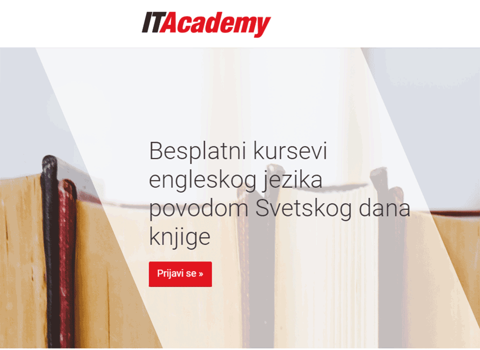 ITAcademy, ustanova koja je više od 15 godina lider u profesionalnoj edukaciji i sertifikaciji u oblasti informacionih tehnologija, povodom Svetskog dana knjige, koji se obeležava 23. aprila,organizuje besplatne online kurseve engleskog jezika za čitaoce našeg portala. Ovom inicijativom želie da obraduju pet čitalaca koji se jave na email Ova adresa el. pošte je zaštićena od spambotova. Omogućite JavaScript da biste je videli. i ostave svoje podatke. U ovoj akciji kompanije LINKgroup i ITAcademy su se tradicionalno udružile kako bi obezbedile besplatne online kurseve engleskog jezika. Kursevi obuhvataju sve nivoe znanja, od A1 do C2. Pre početka kursa, svaki polaznik će uraditi ulazni test kako bi se utvrdo njihov nivo znanja i dodelili im odgovarajući kurs. Kursevi se sastoje od vežbi i materijala koji pokrivaju pisanu komunikaciju, gramatiku i vokabular, i kojima polaznici mogu pristupiti sa bilo kog uređaja i u bilo koje vreme tokom 6 meseci. Takođe, polaznici na platformi za učenje na daljinu imaju i mogućnost da slušaju i vežbaju pravilan izgovor reči, što im omogućava da unaprede i svoje veštine verbalne komunikacije na engleskom jeziku.